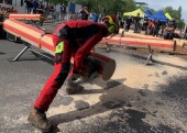 Anmoderation: "An die Sägen, fertig, LOS!, heißt es vom 28. bis zum 30. Mai in Hannover. Im Rahmen der Weltleitmesse LIGNA, für die Holzbe- und verarbeitung, findet von Dienstag bis Donnerstag die 14. Deutsche Waldarbeitermeisterschaft statt. 88 Forstarbeiter treten gegeneinander an und zeigen, was sie ansonsten im Wald machen - Bäume fällen zu Beispiel. Spannend, schnell und ziemlich laut geht es zu, wenn die unterschiedlichen Disziplinen möglichst präzise erledigt werden sollen. Reporter Tim Kuchenbecker hat sich im Wttkampfbereich mal umgeschaut und umgehört. O-Ton: