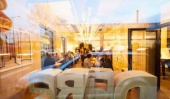 5. Schon der Aufenthaltsbereich hier in Köln-Mülheim besticht durch die Betonoptik kombiniert mit modernen Möbeln.