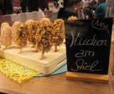 Auf der internationalen Leitmesse für Bäcker und Konditoren, der iba 2012 in München, präsentiert das Unternehmen DEH (D. Entrup-Haselbach) aus Gevelsberg (NRW) Kuchen am Stil. Der Kuchen to go ist auf jeden Fall ein Hingucker, denn im ersten Moment sieht er auch aus wie Eis. In der Branche sorgt der Artikel schon jetzt für Aufsehen, das ist auf der Messe deutlich zu spüren und unser sechsjähriger Testesser ist begeistert. Sie finden hier ein O-Ton-Pakt von dem DEH-Geschäftsführer und ein O-Ton von Ulli (6).
