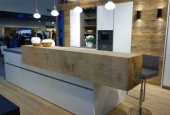 Es fängt schon dabei an, wie sich Kunde Endverbraucher heutzutage eine Küche aussuchen kann. Früher wurde gezeichnet, am Computer zusammengestellt und im Kopf passend gedacht. Heute betritt man seine Küche bereits, bevor es sie wirklich gibt. Das 3D-Küchenplanungskino macht es möglich, sagt Hans Winhart von DANKÜCHEN. O-Ton Man kann also virtuell durch seine geplante Küche laufen und Größen, Materialien, Anbauweisen, etc. so lange ändern, bis es einem gefällt. Dass traditionelle Materialien dabei eine große Rolle spielen, sieht man beispielsweise beim Hersteller werkhaus, Matthias Baur ist hier Küchenplaner. O-Ton In dem vorgeführten Beispiel ist der moderne Küchenblock mit Induktionsplatten und Co., aus Stahl. Der integrierte Weinkühlschrank wird von robustem, altem Holz umrahmt. Tradition trifft auf Modernität. Der Innenarchitekt weiß, dass das Kundenwunsch ist. O-Ton Schreinermeister Sebastian Voit bestätigt, dass Küchen immer mehr zum Wohnraum zählen und da wird kombiniert. Auch bei seinem Beispiel sieht man überall feine LED-Lichter in der Küche und mittendrin: eine massive Theke am Küchenblock angebracht. O-Ton Warum das Handwerk bei solchen Kombinationen gefragt ist? Da ist sich der Fachmann sicher. O-Ton Viele Beispiele, was die Schreiner in Sachen innovative Küchen können und zu bieten haben, zeigt die Heim+Handwerk. Tim Kuchenbecker, Redaktion ... München O-Ton: