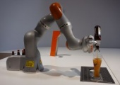 Hört sich an, als wenn sich da jemand ein Getränk einschüttet. Stimmt aber nicht ganz, denn der jemand ist ein Roboter. Wilfried Eberhardt vom Unternehmen KUKA.