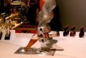 Anmoderation: Auf der Hannover Messe (13.-17. 4.) steht Roboter neben Roboter. Die Hersteller lassen sich deshalb einiges einfallen, um auf ihre Geräte aufmerksam zu machen. Zum Beispiel der Roboterhersteller Kuka. Hinter dessen Standtheke steht ein Hefeweizenzapf-Roboter. Unser Reporter Thomas Ultsch hat ihn bei der Arbeit beobachtet. O-Ton: