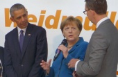 - Gesamter Mitschnitt - Besuch am Stand 4:10 Demonstration Mensch und Roboter arbeiten direkt zusammen: Merkel fragt nach, ob der Kuka-Roboter künftig auch zu Hause Zitronen ausquetschen könnte ... 5.05 Merkel "Die (drahtlose) Stromübertragung fasziniert mich ... wie weit kann das gehen ..." Im Anschluss O-Töne vom Aussteller: Dr. Peter Köhler (Vorstandsvorsitzender) antwortet auf folgende Fragen: 1. Bitte einmal vorstellen mit Namen, welche Firma, Position und wo das Unternehmen ansässig ist. 2. Was haben Sie Merkel und Obama hier gerade vorgestellt? 3. Gemeinsam mit KUKA haben Sie hier auch das Thema drahtlose Energieübertragung gezeigt - worum ging es da? 4. Dieses Thema hat auch die Bundeskanzlerin interessiert - sie fragte direkt nach, wie weit denn die Entfernungen bei der drahtlosen Energieübertragung sein können ... 5. Wie war es denn für Sie und Ihr Unternehmen, Merkel/Obama hier am Stand zu haben? O-Ton: