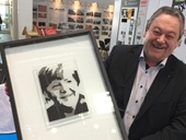 Hannes Riebl hat sein Handwerk für Angela Merkel künstlerisch eingesetzt und ihr einen Siebdruck geschenkt. Darauf zu sehen: Ein Portrait der Kanzlerin.