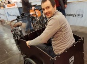 Anmoderation: Wenn schon Testen, dann richtig. Auf der Fahrrad Essen gibt es viele Möglichkeiten, Fahrräder zu testen. Unser Reporter Jörg Sauerwein wollte immer mal ein E-Bike testen. Genommen hat er sich ein Lastenfahrrad. Aber ohne wirkliche zusätzliche Last macht das ja einen Spaß. Da aber keine Wasserkisten greifbar waren, hat er etwas anderes probiert ... O-Ton: