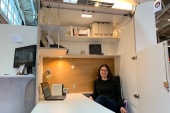 Anmoderation: Die Geschichte von Maria Olinger ist ist schon einen Hinhörer wert. Als die Kinder zur Welt kamen, musste das Arbeitszimmer ausgeräumt und Platz für den Nachwuchs gemacht werden. Gearbeitet wurde ab sofort am Küchentisch. Das hat die Möbeldesignerin so geärgert, dass sie von einem kompletten Büro geträumt hat, das in nur einen einzigen Schrank passt. Aus der Idee wurde Wirklichkeit und aus dem Büro ein abschließbarer Rückzugsort vor den Kindern. Auf der Heim+Handwerk stellt sie ihren genialen Arbeitsplatz vor. Tim Kuchenbecker hat sie in München getroffen. Text: