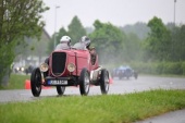 Auto komplett durchchecken, dann noch Werkzeug einstecken und das ein oder andere Ersatzteil und dann hoffen, dass das Auto mitspielt. So bereiten sich die Rennfahrer auf das Vintage Racing vor. Das Wetter spielt schon mal nicht mit. Die Straßen in Friedrichshafen sind nass und damit bekommen die Rennfahrer gleich ein anderes Fahrgefühl. Klaus-Dieter Hein startet mit einer Wolseley Hornet Special: