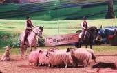Die Mischung aus ganz unterschiedlichen Pferden und Disziplinen begeistert die Tribünen in der Essener Messehalle. Unter anderem auch besonders, als zwei Reiterinnen zu Pferd in die Halle kommen. Mit dabei eine Herde Ziegen und drei Hütehunde – die hören so genau auf die Pfiffe ihrer Besitzerinnen und lenken dadurch die Ziegen durch den Raum und über Hindernisse, dass es fast wirkt, als wäre die Herde ferngesteuert.