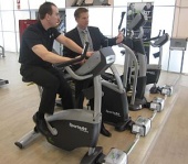 Anmoderation: Stepper, Cardio-Räder und Co. - all diese Geräte verbrauchen in den Fitnessstudios Strom, um die Trainingsergebnisse im Display anzeigen zu können. Doch diese Zeiten sind vorbei. Auf der Fitnessmesse FIBO 2012 werden Geräte vorgestellt, die nicht nur kein Strom mehr benötigen, sie liefern Strom, wenn die Fitnessstudiogänger dort trainieren und diesen Strom können die Studiobetreiber zukünftig für Licht und Wärme nutzen. Und die Vision der Hersteller geht weiter. Tim Sauerwein hat sich das Ganze angeschaut. Text: