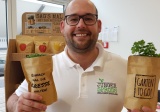 "Einfach mal die Kresse halten": Ein junges Startup-Unternehmen macht auf der IPM 2020 mit flotten Sprüchen auf sich aufmerksam. "Blumen schenkt doch jeder", "Eine Tüte Sonnenschein" oder "Bloß nicht an der Palme wedeln" steht auf den kleinen braunen Beuteln. Die müssen einfach nur aufgerissen und der Inhalt mit Wasser gegossen werden und nach einigen Tagen wachsen Kresse, Petersilie, Sonnenblumen oder sogar Apfelbäume aus den Beuteln. Im Interview spricht der "Erfinder" über die Spruchbeutel und die Idee dahinter.