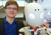 Leadin Roboter gehören schon lange zu unserem Alltag. Sie schweißen Autos zusammen, saugen den Fußboden oder mähen den Rasen. Und natürlich sind die auch schon seit vielen Jahren Dauergast bei der der CeBIT. Dieses Mal (10.-14.03.) wird aber ein besonderes Exemplar in Hannover dabei sein. "Roboy" soll den Menschen nicht übertreffen, sondern ihm möglichst ähnlich sein. Thomas Ultsch hat mit Roboy-Projektleiter Rafael Hostetter gesprochen und auch ein kleines bisschen mit Roboy selbst. Direct quote