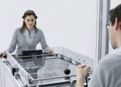 Festo Bionics: Movie CogniGame 07.12.2014 07:34 UhrWith CogniGame, Festo is demonstrating the next generation of operational concepts for human-machine interaction: controlling a system purely by the power of thought. CogniGame is a reinterpretation of a well-known video game that was launched on the market in the 1970s. By means of a brain-computer interface (BCI), one player uses only his power of thought to control the bat. On the other side is a second player, who uses his muscle power to operate a lever that moves his own bat.