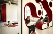 Schulbank an Schulbank, klare Ordnung, ausgerichtet auf das Lehrerpult und die Tafel. So sieht es heute noch in den meisten Klassenzimmern aus. In Zukunft soll das alles anders werden, zumindest wenn es nach Rosan Bosch geht. Die holländische Künstlerin mit Studio in Dänemark zeigt auf der Bildungsmesse didacta (24.-28. 2.) in Hannover, wie ihrer Meinung nach die Schularchitektur der Zukunft aussehen sollte. Unser Reporter Thomas Ultsch hat mit einem Mitarbeiter von Bosch gesprochen.