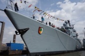 Leadin Neben den zahlreichen Groß- und Traditionssegler sind auch immer die Marineschiffe ein Anziehungspunkt für tausende von Besuchern, die sich im Rahmen von Open Ship einmal an Deck umschauen wollen. In diesem Jahr ist auch die Fregatte Augsburg mit dabei. Am Samstagmorgen standen bereits einige hundert Interessierte in der Schlange um an Bord gehen zu können. Auch für den Kommandanten des Schiffs, Fregattenkapitän Jörg Mascow, ist die Teilnahme am 826. Hafengeburtstag Hamburg etwas ganz Besonderes - Reporter Tim Kuchenbecker hat ihn getroffen. Direct quote