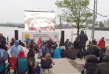 Zum 829. Hafengeburtstag haben sich die Organisatoren etwas Besonderes einfallen lassen: Die Elbphilharmonie wird ganz aktiver Teil des Festes. Direkt vor dem Publikumsmagneten werden an allen Tagen auf einer großen Videowand Konzerte aus der Elbphilharmonie gezeigt, während im Hintergrund die Schiffe auf dem Wasser vorbeiziehen. O-Ton-Collage mit vielen Besucherreaktionen.