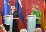 Im Anschluss an den Rundgang der Bundeskanzlerin Angela Merkel mit dem russischen Präsidenten Wladimir Putin gaben beide eine Pressekonferenz. Im O-Ton-Paket äußert sie sich unter anderem allgemein zum Rundgang und zur russischen Beteiligung auf der Messe. Sie spricht außerdem über ihre Kritik am russischen Umgang mit Nichtregierungsorganisationen, über die Situationen in Nordkorea und in Syrien.