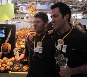 Das Deutsche Meisterteam antwortet auf folgende Fragen: 1. Bitte einmal kurz vorstellen - Name reicht und woher ihr kommt. 2. Wie groß ist Eure Euphorie - Eure Freude? 3. Hättet Ihr damit gerechnet? 4. Könnt Ihr einmal erzählen, was ihr jetzt heute gebacken habt - das mal ein bisschen beschreiben. 5. Hat alles geklappt, so wie ihr es Euch vorgenommen habt oder ging auch das ein oder andere schief? 6. Wie war es denn, dass Euch die ganze Zeit so viele Leute beobachten konnten? 7. Wie wird heute und in den kommenden Tagen gefeiert? 8. Was wird sich jetzt für Euch verändern - ich meine Deutscher Meister ist ja nicht jeder? 9. Wann wirds denn die ersten Deutsche Meisterbrötchen oder den Deutsche Meisterkuchen bei Euch in der Bäckerei zu kaufen geben? Oder anders gefragt, wenn ihr jetzt bestimmen könntet - welche Deutsche Meister-Produkte wären das? Direct quote