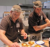 O-Ton Verkündung und Jubelschrei Das lange Warten hatte um Punkt 18 Uhr endlich ein Ende. Jörg Schmid aus Gomaringen und Johannes Hirth aus Bad Friedrichshall haben es geschafft, sie sind tatsächlich die besten Bäcker Deutschlands. O-Ton (unfassbar) Die Konkurrenz war groß, und alle Teams haben tolle Ergebnisse abgeliefert, wie der Präsident des Zentralverbandes des Deutschen Bäckerhandwerks Peter Becker versichert. O-Ton (hohes Niveau) Fünf verschiedene Produkte mussten die Bäckermeister nach sechseinhalb Stunden schweißtreibender Arbeit präsentieren und Jörg Schmid und Johannes Hirth wollten alle überraschen - das Konzept ist aufgegangen. O-Ton (Beobachtung) Deutsche Meister, dass ist erst der Anfang sagen die beiden Bäcker, die sich als Team die "Wild Bakers" nennen, denn jetzt kommen sie in die Deutsche Bäcker Nationalmannschaft. Und der derzeitige Captain der Nationalmannschaft saß bei dieser Deutschen Meisterschaft in der Jury, Siegfried Brenneis. O-Ton (Warum gewonnen, was hat am meisten beeindruckt?) Und jetzt heißt es erst einmal feiern ... O-Ton (Sau raus lassen) Herzlichen Glückwunsch, den besten Deutschen Bäckern 2012 - die Wild Bakers. Tim Kuchenbecker, Redaktion ... München O-Ton: