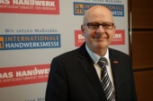 Paul Scheler antwortet auf folgende Fragen: 1. Bitte einmal vorstellen. 2. Welche Bedeutung hat die Internationale Handwerksmesse? 3. Warum ist es wichtig, dass hier auch Ihre Handwerkskammer präsent ist? Sind Sie stolz, dass Sie dabei sind? 4. Wie viele Betriebe sind aus Ihrem Bezirk dabei? Was präsentieren die? 5. Können Sie bitte einmal verdeutlichen, welche wirtschaftliche Bedeutung das Handwerk in Ihrer Region hat? Wie ist die derzeitige Situation? 6. Was erhoffen Sie sich von dem Auftritt auf der Internationalen Handwerksmesse? O-Ton: