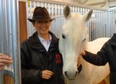 Astrid Oberniedermayr antwortet auf folgende Fragen: 1. Wir stehen hier gerade bei einem Magalarga Marchador - was ist das Besondere an den Pferden? 2. Können die die besondere Gangart einmal beschreiben? 3. Jetzt stehen wir hier bei einem anderen Mangalarga Marchador - was ist das für einer und können Sie etwas zu den Charaktereigenschaften sagen? 4. Sind die Pferde jetzt alle aus Brasilien extra eingeflogen worden? 5. Die Mangalarga Marchador gehört zu den meistverbreiteten Pferderassen der Welt? 6. Beobachten Sie denn einen Trend, dass die Rasse auch in Europa immer gefragter ist? 7. Können Sie bitte einmal den kompletten Namen der Rasse nennen und etwas zur Geschichte sagen? 8. Sie wollen die Mangalarga Marchador in Europa bekannt machen - was genau ist Ihre Funktion dabei? 9. Wie sieht die Präsenz der Pferde hier auf der Messe aus? 10. Die Pferde sind auch Teil der HOP TOP Show, welche Rolle übernehmen sie da? 11. Was erhoffen Sie sich von dem Auftritt auf der EQUITANA? O-Ton: