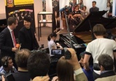Für mehr Spaß beim Klavierspielen: Starpianist Lang Lang auf der Musikmesse 2015 16.04.2015 17:37 UhrAm Donnerstag (16.04.) war Starpianist Lang Lang zu Gast aufder Musikmesse in Frankfurt am Main. Auf der Bühne der neuen musikzeitung hatder Weltstar seine neuen Klavierbücher "mastering the piano” vorgestellt.Der erste Teil der Education Reihe "Lang Lang Piano Academy" ist alsCo-Publikation von Faber Music und Edition Peters erschienen. In fünffortlaufenden Bänden für Schüler und Lehrer lässt sich der Ausnahmepianisterstmals genau auf die Finger schauen und erschließt angehenden Pianistinnenund Pianisten einen neuen, ganz persönlichen Zugang zum Klavierspiel. Es istdas erste Mal, dass Lang Lang überhaupt mit einem Notenverlag zusammenarbeitet.