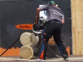 Eine übergroße Motorsäge, eine extra angefertigte Axt für 500 Euro und jede Menge Holzstämme die zerkleinert werden wollen. Männer werden jetzt wahrscheinlich hellhörig, denn das hört sich auf jeden Fall nach jeder Menge Spaß an. Und den zeigen die besten Profis aus Deutschland derzeit auf der Messe LIGNA, in Hannover. Es geht um das Sportholzfällen. Starke Kerle zeigen, wie schnell Mann richtig große Baumstämme zersägen oder durchhacken kann. Der LIGNACup bildet traditionell den Saisonauftakt der STIHL Timbersports Series.