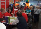 O-Ton Das Spiel, das Sebastian den interessierten Besuchern hier vorstellt ist ein Gesellschaftsspiel für alle zwischen 5 und 99 Jahren. O-Ton Wolfram ist der Leiter des Spielernetzwerkstands. O-Ton Er und sein Team sind Spieleberater auf der modell-hobby-spiel. O-Ton Die Besucher kommen mit den unterschiedlichsten Fragen und Wünschen. O-Ton Im Minutentakt setzen sich die Besucher an die bereitgestellten Tische: Familien, Kinder unter sich, Erwachsene, Spielneulinge und auch Spielprofis. Ein Angebot auf der modell-hobby-spiel, das bei den Besuchern gut ankommt. O-Ton Gut 40 Spiele können direkt am Stand ausprobiert werden. Und wie hieß noch mal das eine davon? O-Töne Richtig! Tim Kuchenbecker, Redaktion ... Leipzig O-Ton: