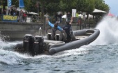 Anmoderation: Hunderte, wenn nicht tausende Besucher locken die dröhnenden Motoren Abend für Abend an die Friedrichshafener Uferpromenade. Während der "Liquid Quarter Mile" fahren die schnellsten Boote der Wassersportmesse Interboot gegeneinander und messen sich unter anderem in puncto Geschwindigkeit. Das Ganze sieht von Land atemberaubend aus und ist noch spektakulärer, wenn man mal mitfahren darf, so wie unser Messereporter Tim Kuchenbecker. O-Ton: