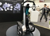 Das japanische Unternehmen AISIN stellt auf der CeBIT 2017 ein Elektrofahrzeug vor, bei dem man sich tatsächlich zuerst fragt: Ist das ein Scherz? Das Mutifunktionsgefährt dient zum einen als eine Art Elektroroller. Mit zwei, drei Handgriffen ist es dann eine Art Segway auf das ich mich stellen und durch die Gegend fahren kann und wieder ein paar einfache Umstellungen und das Ganze ist ein Gepäckwagen und zwar einer, den ich nicht schieben muss, der verfolgt einen nämlich von alleine und er bringt auch die Einkäufe selbstständig nach Hause, wenn ich das möchte.