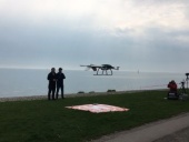 ...das ist das Geräusch, wenn der Wingcopter sich in die Lüfte schwingt. Das außergewöhnliche Gerät hat bei der Übung auf dem Bodensee die neugierigen Blicke vieler Passanten auf sich gezogen und die haben so etwas wirklich noch nie gesehen. O-Ton Und diese besondere Hybrid-Drohne soll die Feuerwehr unterstützen. Bei welcher Art von Einsätzen eine solche Drohne helfen könnte, erklärt Kreisbrandmeister Henning Nöh. O-Ton Das Probe-Szenario auf dem Bodensee war Folgendes: Ein havariertes Boot befindet sich auf dem See, an Bord brennt es, Öl läuft aus und Menschen sowie die Umwelt sind in Gefahr. Die Drohne liefert Bilder, mit denen die Rettungskräfte gezielter und effektiver ihren Einsatz starten können. Mit einer kleinen Spielzeugdrohne funktioniert das allerdings nicht. Jens Rosenow ist Pressesprecher beim deutschsprachigen Dachverband unbemannter Luftfahrt Europas und Flugleiter der Übung. O-Ton Der eingesetzte Wingcopter ist etwa 1,7 mal 1,3 Meter groß, wird bis zu 130 km/h schnell und wiegt auch ganz schön viel... O-Ton Für alle Parteien war die Übung auf dem Bodensee trotz unerwarteter Schwierigkeiten zum Beispiel wegen des starken Windes sehr aufschlussreich. Kreisbrandmeister Henning Nöh will sich nach dem Testlauf jedenfalls weitere Informationen auf der AERO holen und denkt über eine Drohnen-Anschaffung für die Feuerwehr nach. Bettina Fath, Redaktion... Friedrichshafen O-Ton: