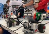 Even und Max sind gerade einmal 10 Jahre alt. Gleich stellen die Beiden ihren selbst programmierten Roboter vor. O-Ton Ansgar Bredenfeld über eine Sonderfläche mit Workshops, die von der Industrie- und Handelskammer zu Leipzig veranstaltet werden. Die jungen Tekkies nutzen Robotikbausätze, denn der Roboter muss ja erst einmal zusammengebaut werden, bevor man ihn am Computer programmieren kann, alles hängt miteinander zusammen, erklärt Dorothea, 12 Jahre jung. O-Ton Jedes Teil am Roboter muss also erst einmal physisch, dann digital erkannt und anschließend entsprechend richtig programmiert werden. Bei Even und Max gibt´s allerdings ein Problem. O-Ton Dabei soll er eigentlich einen schwarzen Strich auf einem großen Tisch entlangfahren. Ein paar Meter weiter sitzen zwei Jungprogrammierer vor einer Lego-Mondlandschaft. Coach Sebastian Wind schaut den beiden über die Schulter. O-Ton Und, hier muss man schon etwas mehr programmieren können. Eine Beispiel-Aufgabe: O-Ton Die Begeisterung ist allen jungen Teilnehmern deutlich anzusehen. Am Wochenende können die Nachwuchstüftler spontan in die Tekkie Area der modell-hobby-spiel kommen und mitmachen. Drei Mal am Tag finden die zweistündigen Workshops statt. Marie-Luise, 11 Jahre, war auch schon hier. O-Ton Und, wenn aus Technik Hobby wird, kann ja aus einem Hobby auch irgendwann einmal ein Beruf werden. Tim Kuchenbecker, Redaktion ... Leipzig O-Ton: