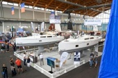 Messedebüt, Europapremiere oder Weltneuheit: in den sechs Messehallen stehen viele dieser Schilder. So auch vor der Candela Seven, einem Boot aus Kohlefasern.