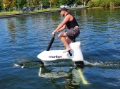Mit dem Fahrrad übers Wasser - der Hydrofoiler auf der Interboot