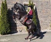 Dysli antwortet auf folgende Fragen: 1. Was macht für sie den Reiz der Equitana aus? 0:12 Min. (Timecode) „Erst mal ist sie für mich Familie … gehe schon mein Leben lang zur Equitana … uns verbindet einfach diese Liebe zum Pferd … verschiedene Kulturen aufeinandertreffen …“ 2. Sie sind in diesem Jahr auch wieder auf der Equitana und arbeiten dort – was machen sie da? 0:50 Min. „… gebe Tagesvorführungen … stelle meine Reitweise vor … Einblick in meine Philosophie, wie ich die Pferde ausbilde …“ 3. Was macht ihre Philosophie aus? 1:23 Min. „Pferde kommunizieren über Körpersprache … bin ein Freund davon, es zu analysieren, wie du selber bist … und dann das Pferd zu analysieren und da einen guten Weg zu finden … harmonische Kommunikation aufbauen …“ 4. Viele kennen ihre Arbeit aus Filmen – was ist für sie das Spannende an der Arbeit mit Pferden in Film? 2:02 Min. „Für mich war es eine Herausforderung … liebe es, mit meinen Pferden neue Dinge zu erleben … um die Bindung mit meinem Pferd zu stärken … bringen wir uns immer wieder in Situationen, wo es für das Pferd etwas Neues ist und ich bin der Sicherheitspunkt und Film ist dafür einfach perfekt … jeden Tag neue Herausforderungen … Abenteuer … starkes Miteinander und stärkt unglaublich die Bindung …“ 5. Gibt’s besondere Momente, die dabei wirklich eine große Herausforderung waren? 2:55 Min. „Definitiv … gerade die ersten Filme … Ostwind … da wurden Drohnenaufnahmen gemacht – allerdings mit Riesendrohnen, das waren Mini-Helikopter … und da sollte dieses Pferd frei über die Wiese galoppieren und die Drohne verfolgt mich … das Pferd hatte panische Angst vor dieser Drohne … ich wusste auch nicht, wie weit sie weg war … sehr nah hinter mir … und ich sollte freihändig ohne alles diese Wiese im vollen Galopp…“ 6. Und das hat aber trotzdem funktioniert? 3:29 Min. „Das hat funktioniert … Herausforderung … mit meinem Pferd deutlich was dazu gelernt.“ 7. Corona hat auch die Messen als Thema bestimmt – hat sie das beruflich auch berührt? 4:00 Min. „… konnte keine Live-Kurse mehr machen … keine Coachings mehr … aber sehr auf online konzentriert … ausbauen … sehr froh darüber … erreicht viel mehr Menschen … für mich war die Corona-Zeit eigentlich eine gute Zeit, um mich wieder auf meine Pferde zu konzentrieren, der Ausbildung zu widmen … gute Auszeit …“ 8. Aber es ist auch schön, dass diese Auszeit mit der Equitana jetzt zu Ende ist? 4:50 Min. „Auf jeden Fall … reicht auch irgendwann mit Auszeit … man giert danach, die Leute um sich zu haben … freue mich jetzt sehr auf die Equitana.“ Direct quote
