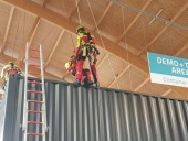 Mit einem Jahr noch ganz frisch in der Branche, aber schon auf der Vertical Pro vertreten: Tinez Workwear. Das Hamburger Unternehmen stellt Arbeitskleidung für Höhenarbeiter her und hat zum Beispiel eine Lösung für Hosentaschen in sitzender Position, Geschäftsführer Klaus Buschbeck: TON Auch ganz innovativ unterwegs, die Firma Benky Climbing. Sie präsentiert Kletterwände, die sich von den anderen Herstellern abheben. Was macht eure Frames denn so besonders? Geschäftsführer Christian Benk: TON Für die Besucher sicherlich immer toll, Vorführungen. Davon gibt's zum Beispiel welche am Stand der Höhenretter der Feuerwehr Baden-Württemberg. Oliver Walzer, was zeigt ihr auf der Vertical Pro? TON Das alles gibt es auf der Vertical Pro in Friedrichshafen noch am 25. und 26. November. Theresa Vorleiter... Redaktion... Friedrichshafen O-Ton:
