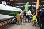 Die Idee war das erste recycelbare Serienboot auf den Markt zu bringen. Simon Licht hat diese Vision mit seinen Partnern umgesetzt. O-Ton Zu 90 Prozent ist der kleine Segler laut Hersteller recycelbar. Neben dem Optimisten steht auch ein "grünes" Stand Up Paddle Board, statt Kunststoff hat man hier u.a. auf Holz gesetzt. In einer ganz anderen Halle steht die wohl teuerste Motoryacht der diesjährigen Interboot. Maik Heiligensetzer von Say Carbon Yachts. O-Ton Weiter geht es mit dem schnellsten Elektro-Motorboot der Welt - den Rekord haben sich die Macher des Performance e801 in diesem Sommer bei der Monaco Energy Boat Challenge geholt. Aber außer dem aufgedruckten Stromstecker auf dem Boot und dem Hinweis "100 Prozent elektrisch" - sieht man dem Motorboot sonst so gar nicht an, dass es überhaupt ein Elektroboot ist. Frauke von Klebelsberg. O-Ton Das Boot schafft übrigens 52 Knoten, umgerechnet 96 km/h. Und bei so viel Geschwindigkeit wechseln wir gemütlich zum letzten Highlight: einem Elektro-Tretboot - Steffen Ehlert. O-Ton Und so geht´s mit dem Elektro-Tretboot über den Messe-See in Friedrichshafen: Ausschau haltend nach den vielen, vielen weiteren Highlights auf dieser Interboot. Tim Kuchenbecker, Redaktion ... Friedrichshafen Direct quote