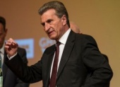 Günther H. Oettinger antwortet auf folgende Fragen: 1. Können Sie bitte etwas zur Bedeutung der Internationalen Handwerksmesse sagen? 2. Wie wichtig ist das Thema Energiewende hier auf der Messe - es wird ja viel diskutiert über dieses Thema? 3. Was sagen Sie zum "Münchener Pakt", der eben zwischen Horst Seehofer, Philipp Rösler und Ihnen (?) während der Eröffnung zur IHM 2012 geschlossen wurde, in dem es darum gehen soll vielleicht auch per Planungsbeschleunigungsgesetz Beschleunigung in die Energiewende zu bringen? O-Ton: